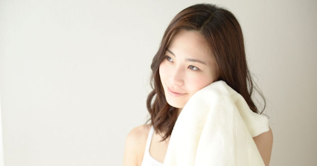 充分にすすぎが出来たら、タオルをそっと顔に押し当てるようにして、水気を拭き取ります。